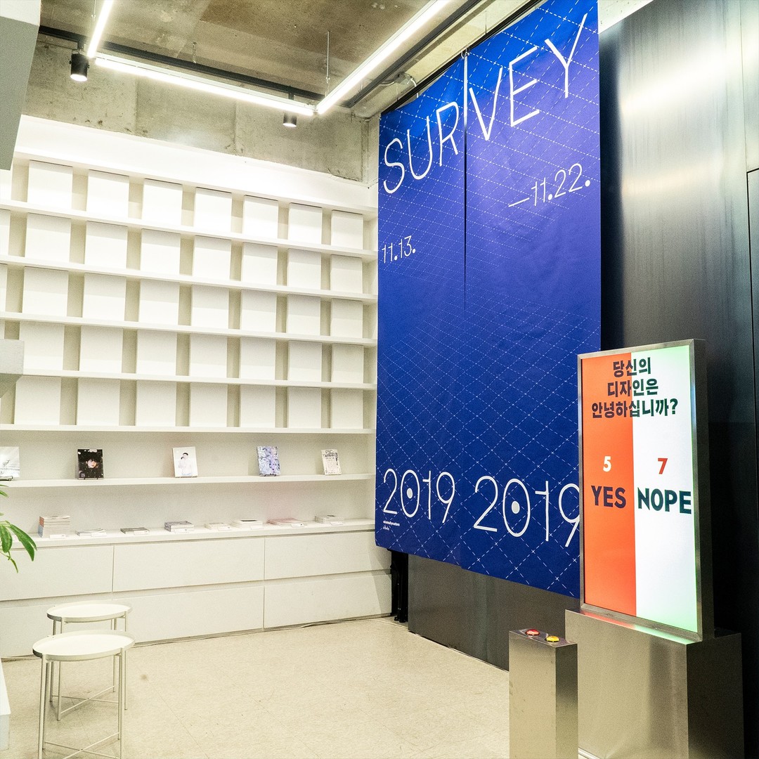 《서베이 2019》는 그래픽 디자이너들의 대답을 모으고, 서로 잇고, 그 위치를 표시하여 거대한 상황 파악의 그래프를 그리려는 시도이다. 전시는 영감의 궤도를 추적하지만 영감의 순간을 미화할 계획은 없다. 당연히 영감의 부재도 환영한다.