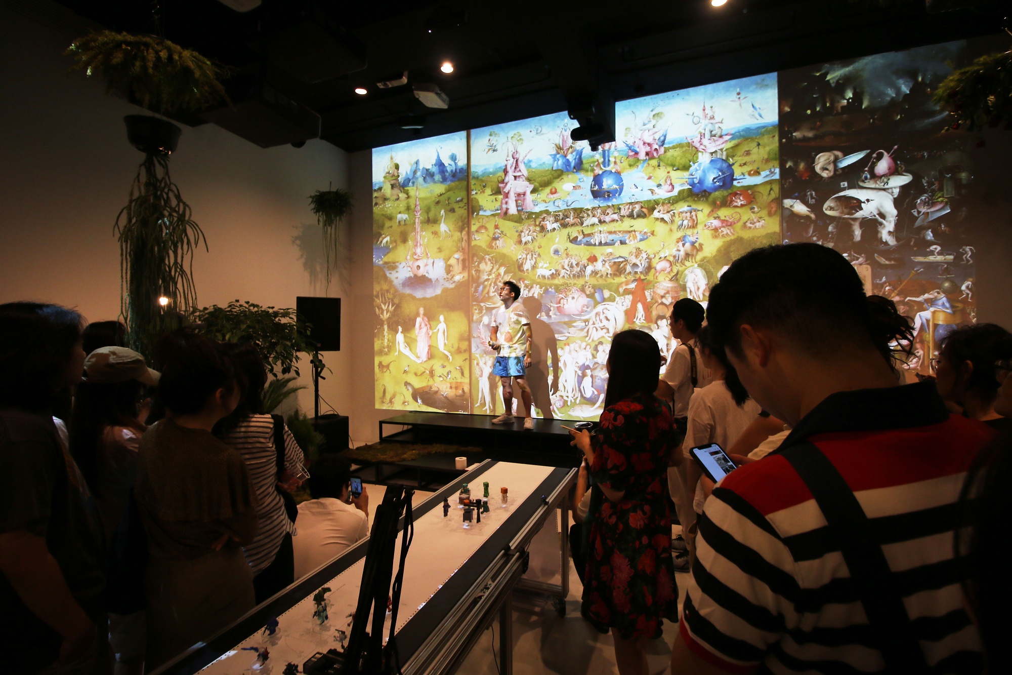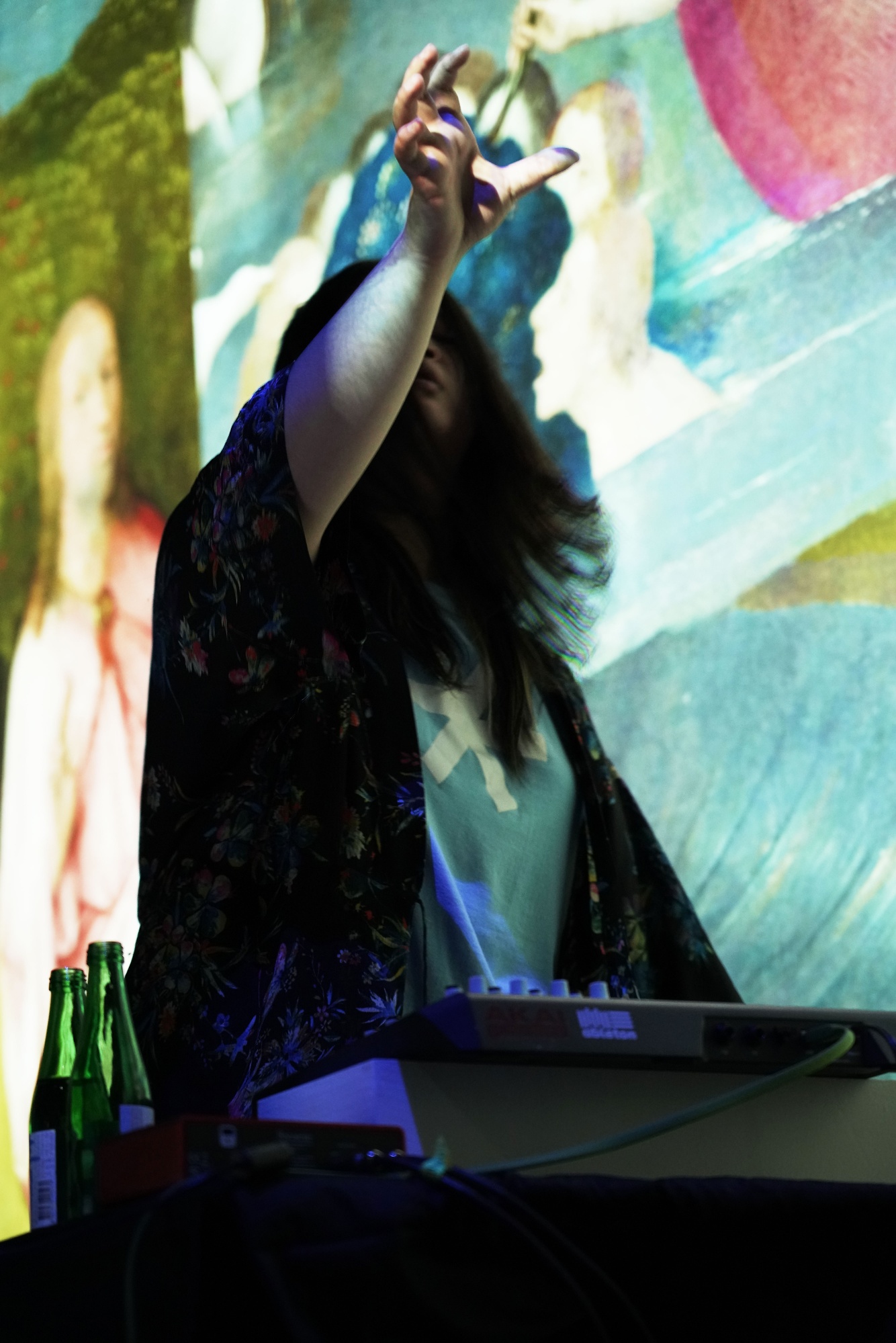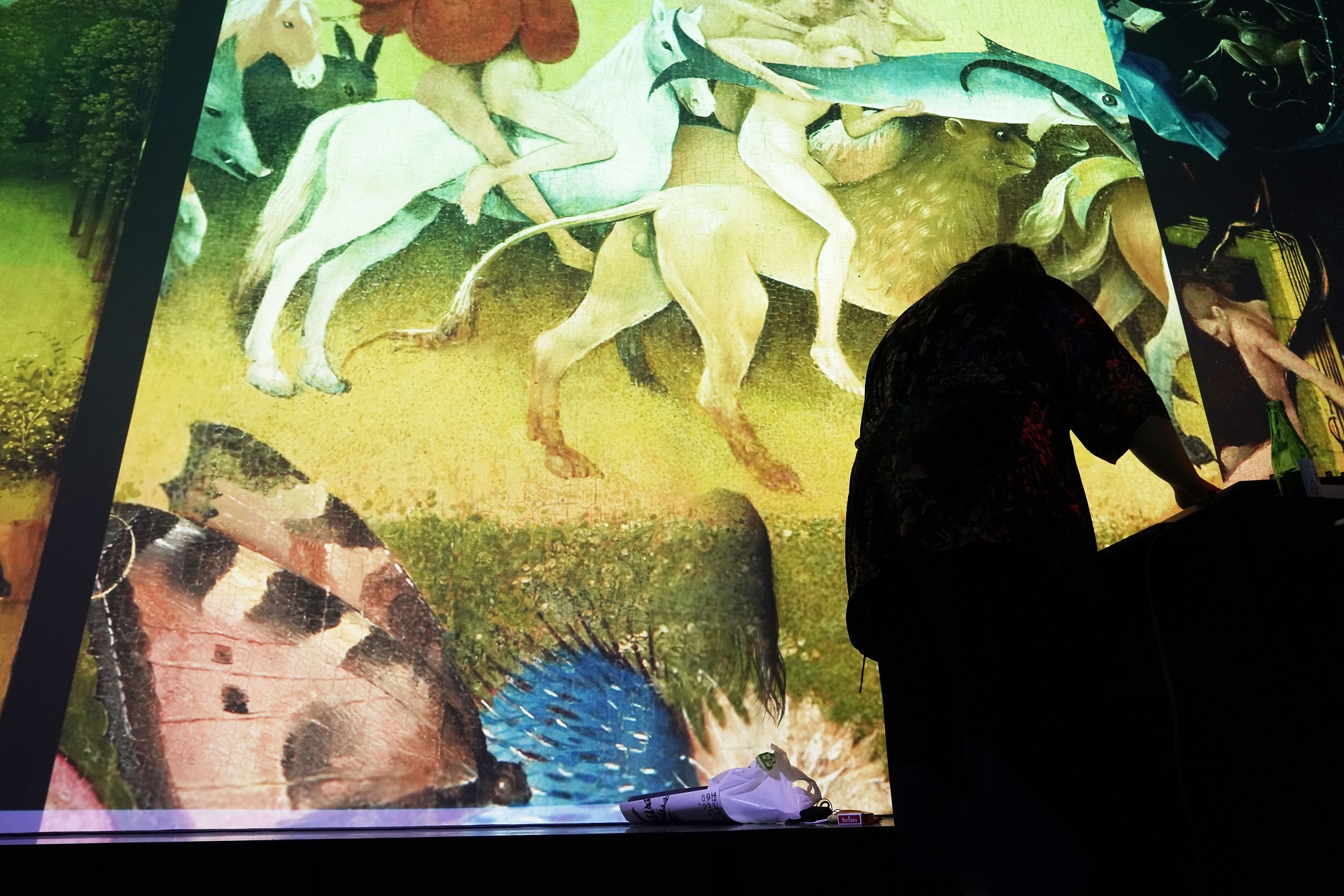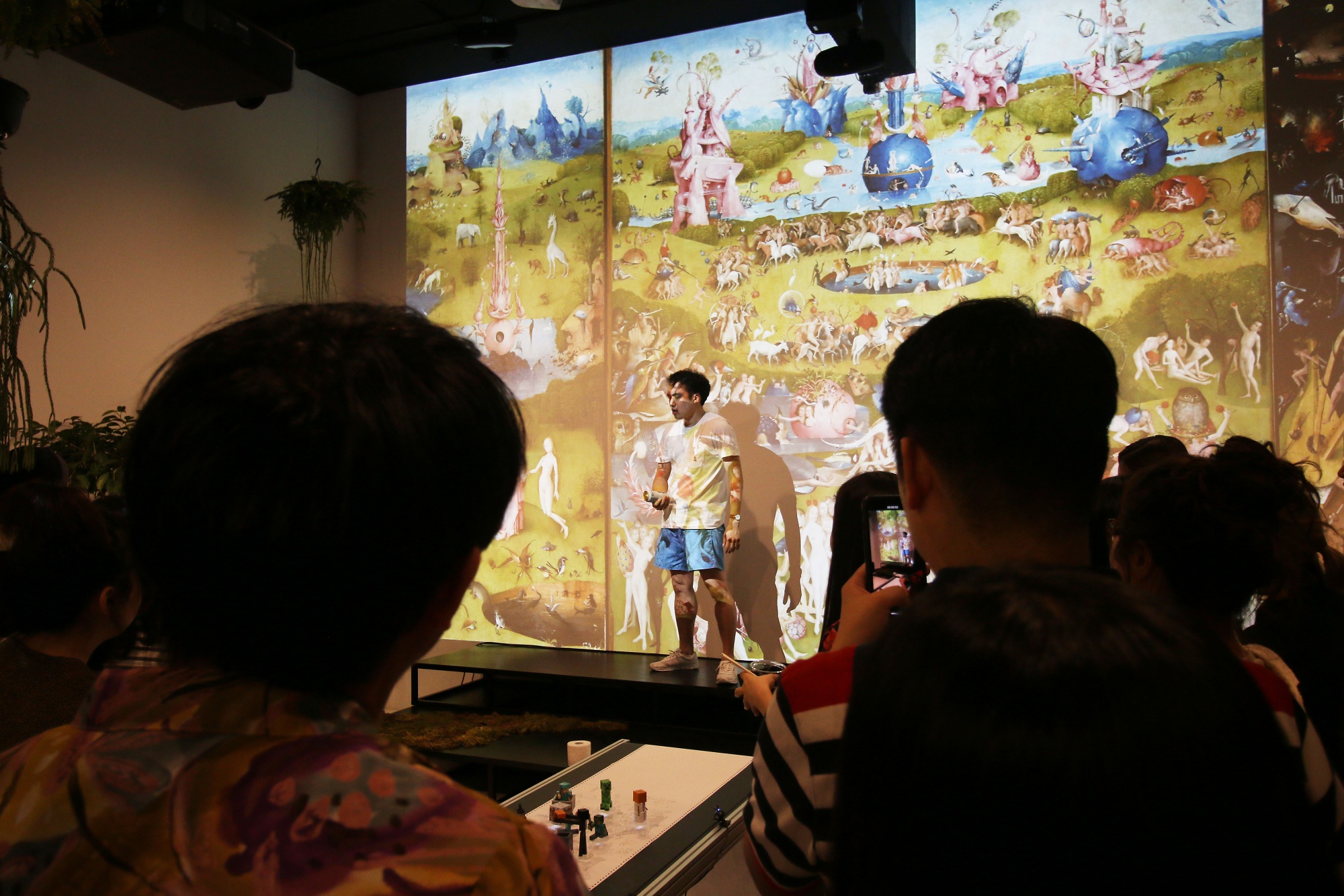 빠르고 강한 비트 속에서 유머스러운 키라라의 음악은, 이날 퍼포먼스에서도 여러 소스를 매쉬업하여 때로는 귀엽고, 때로는 강한 면을 음악으로 연주하며 본인의 장기를 십분발휘합니다. 가끔 예상하지 못한 음악의 변주는 키라라의 노련함이 돋보이는 동시에, 감상자에게 청각적 카타르시스를 선사합니다. 키라라의 음악과 함께 펼쳐진 보쉬 작품 중에서도 쾌락을 탐닉하는 군중의 모습이 더욱 부각되는 듯한 인상을 줍니다.