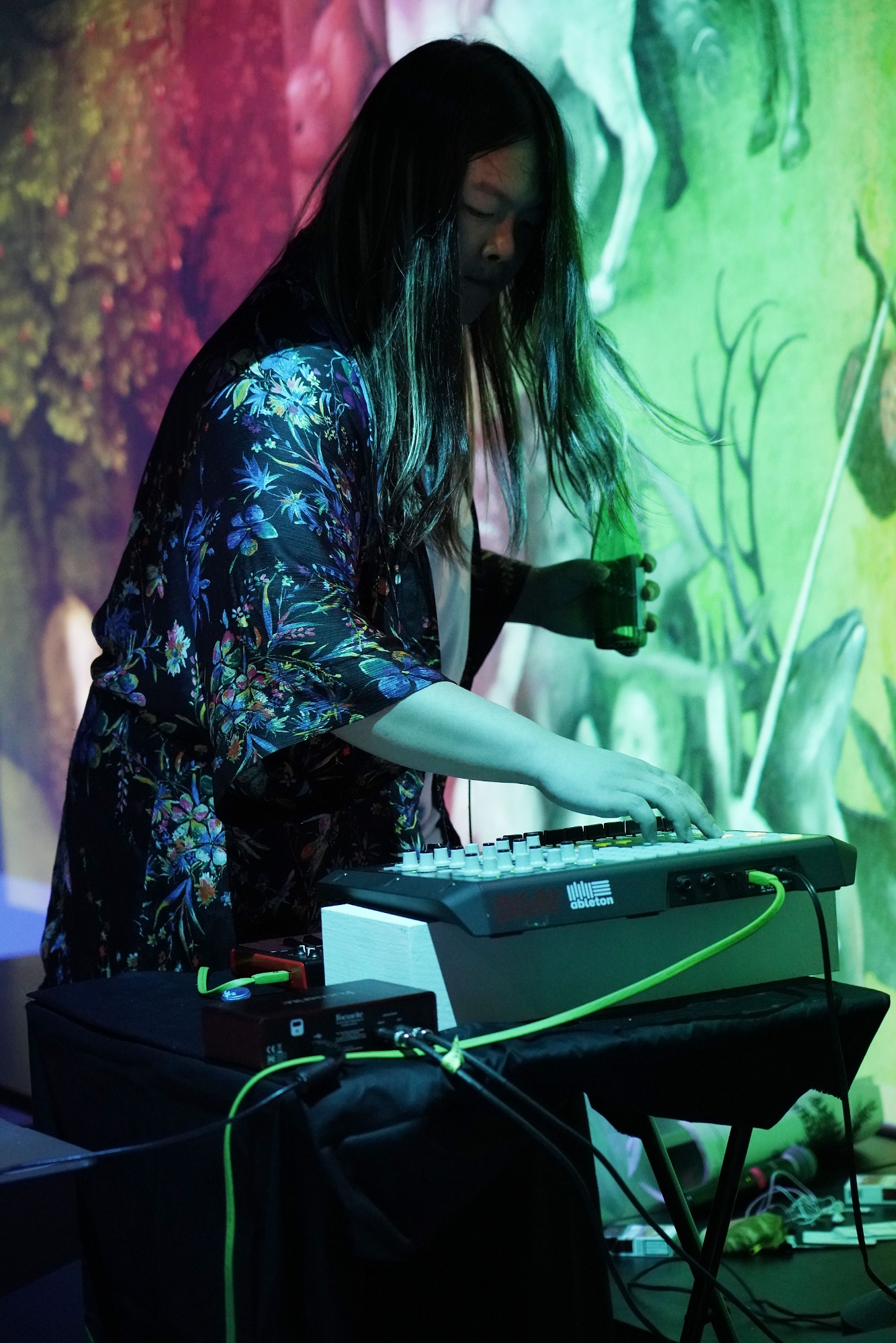 이어서 ‘예쁘고 강한 음악’의 키라라는 1시간 동안 전자음악을 선보였습니다. “키라라는 예쁘고 강합니다. 여러분은 춤을 춥니다.” 키라라의 시그니처 사운드는 관람객에게 ‘주문’을 겁니다. 날카롭게 빠른 비트가 스피커에서 흘러 나오자마자 주문에 걸린 사람들은 빠른 비트와 함께 몸을 움직이기 시작합니다.