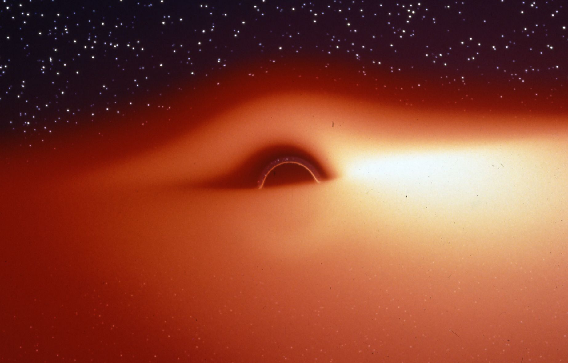 루미네트의 이미지는 영화 인터스텔라를 연상하게 하는데요. 하지만 루미네트 이미지는 인터스텔라에서 볼 수 없는 다른 두 가지 중요한 현상을 묘사하고 있습니다. 첫 번째는 블랙홀의 가장자리 근처에서 에너지와 빛이 더 강하고 더 멀리 떨어진다는 사실입니다. 또 다른 하나는 팽창 원반의 회전으로 인한 도플러 효과와 아인슈타인 효과입니다. 회전 방향에 따라 한쪽이 빛을 밝게 보이게 됩니다. 루미네트 이미지에서는 거대한 원반이 시계 반대 방향으로 회전하기 때문에 빛이 왼쪽에 있는 뷰어 쪽으로 접근했다가 오른쪽에서 뒤로 물러나 왼쪽이 더 밝게 보입니다. 인터스텔라 영화감독 크리스토퍼 놀란도 이 사실을 알고 있었지만, 관객이 혼란스러운 것이 염려되어 이러한 과정은 생략했다고 합니다.